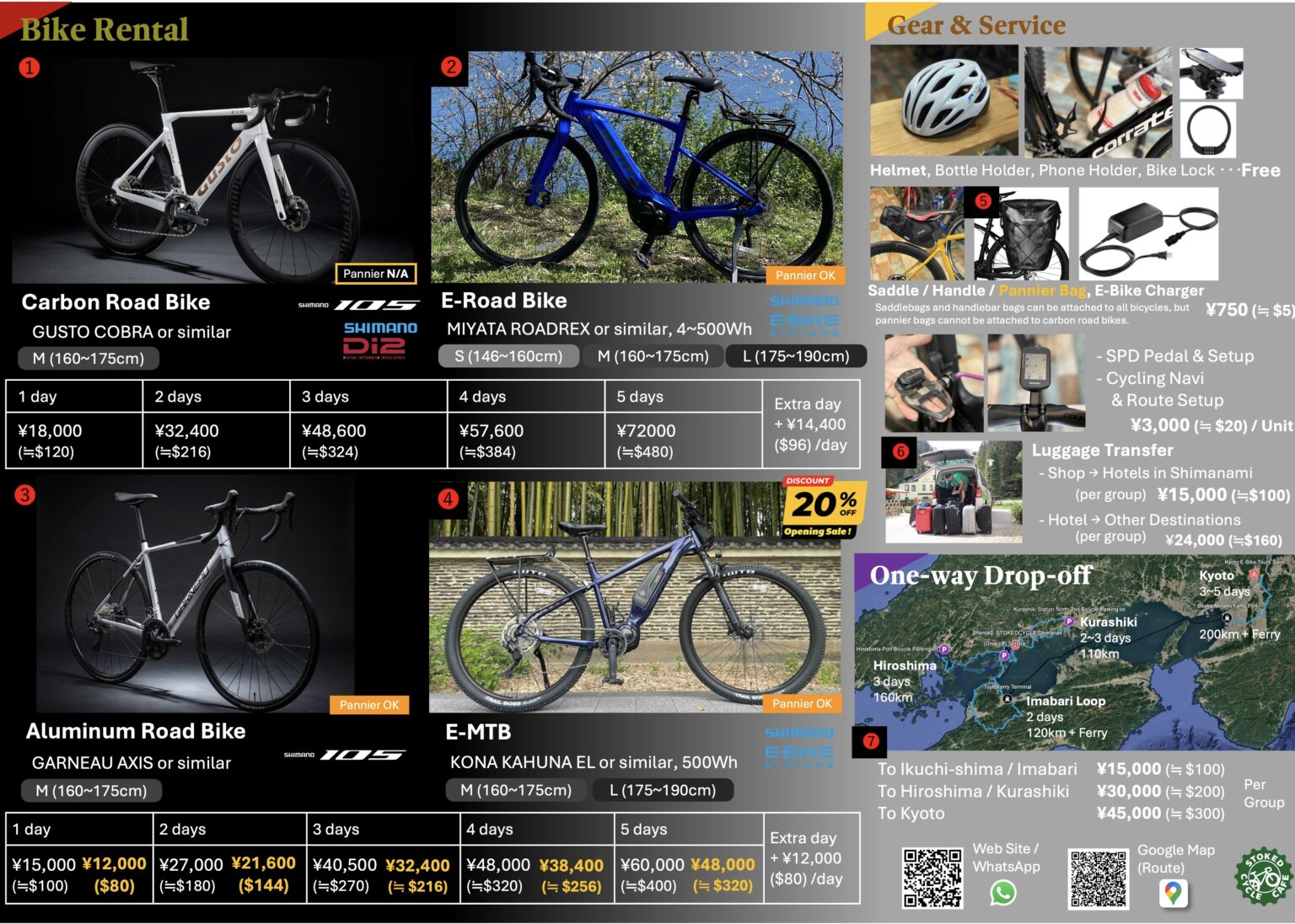 • 2 Days: Approx. $180 USD (Perfect for a relaxed Shimanami Kaido crossing!)